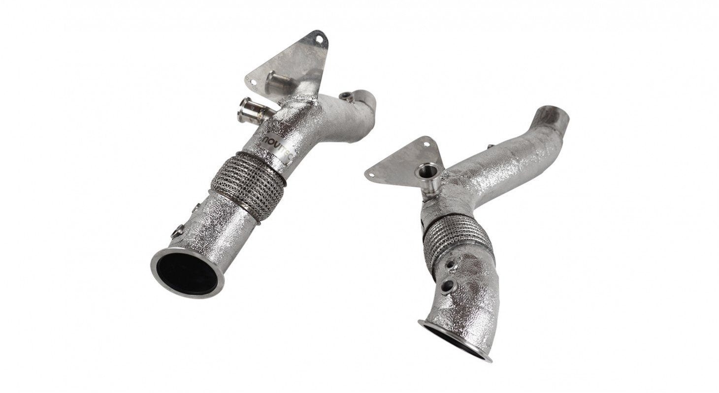 NOVITEC’s Race Downpipes are high-performance exhaust components designed to reduce backpressure and enhance exhaust flow. Crafted from premium stainless steel, these downpipes are fully heat-protected to withstand extreme conditions and ensure durability. For superior thermal management and a distinctive appearance, an optional 999 fine gold-plated finish is available. By optimizing exhaust dynamics, NOVITEC’s Race Downpipes improve throttle response, increase horsepower and torque, and deliver a more aggressive exhaust note, elevating the overall driving experience.