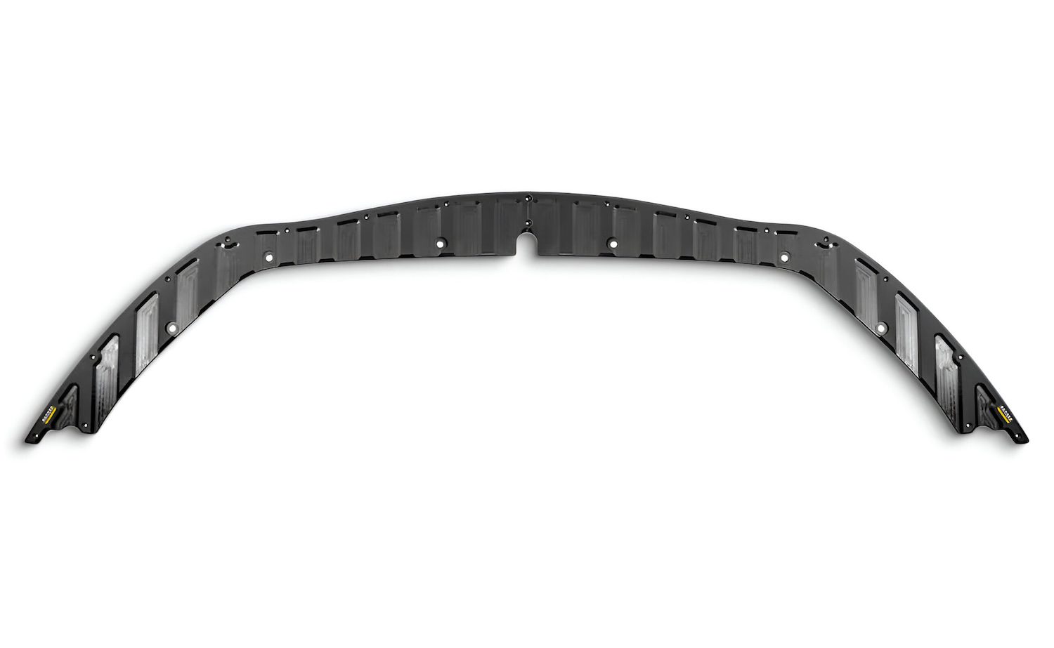 Scrape Armor Front Bumper Protection for the Ferrari FF is constructed from TekLite polymer, a proprietary material designed to reduce surface friction by 50%, allowing the vehicle to glide over obstacles with minimal resistance while protecting the bumper from tearing. Its patented GlideTek rail system decreases surface contact by over 50%, reducing friction and minimizing stress on the bumper during road contact. Additionally, Scrape Armor features patented ElipTek edges with angled contours that eliminate hard edges, preventing snags and protecting the bumper when reversing off unseen obstacles.
