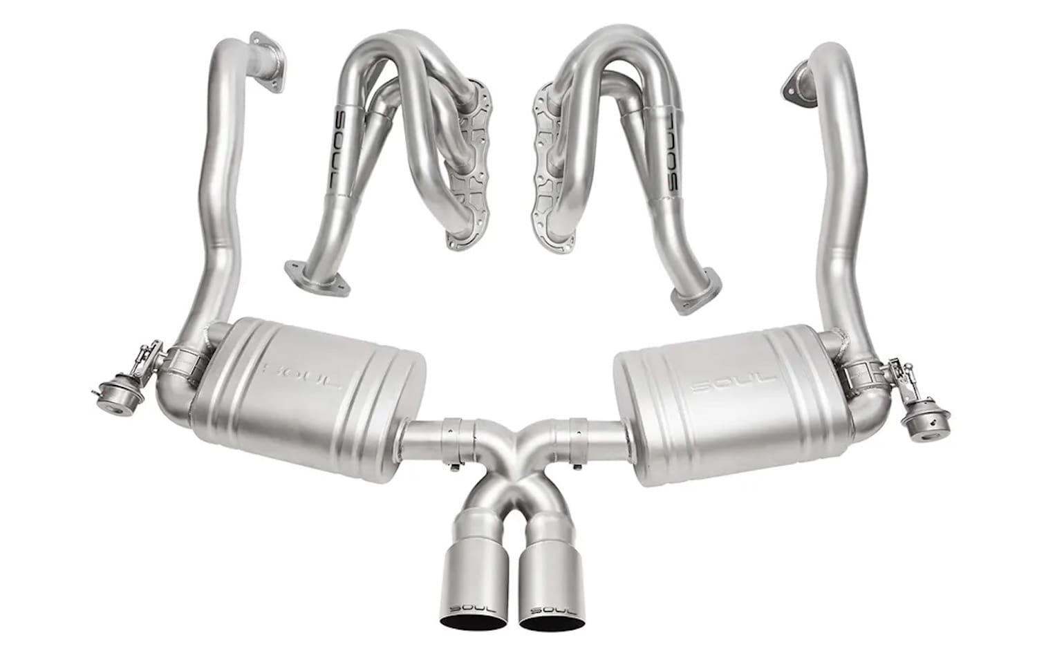 SOUL Performance developed the Competition Package by enthusiasts, for enthusiasts. By combining the superior flow characteristics of its Competition Headers with the Valved Exhaust System’s X-pipe efficiency, SOUL Performance delivers sharper response and a more dramatic sound change for vehicles that see both street and track use. With the valves closed, the system maintains a daily-driver-friendly tone that helps prevent fatigue from excessive volume or droning. When the valves open, the straight-through exhaust path unleashes the full character of the flat-six, producing an intoxicating soundtrack that exits through the customer’s chosen exhaust tips.