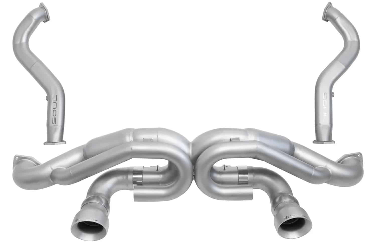 SOUL Performance Competition Over Axle Pipes paired with the Race Exhaust eliminate key GT4 RS restrictions with a true 3-inch flow path, unlocking maximum sound and performance from the 4.0L flat-six.