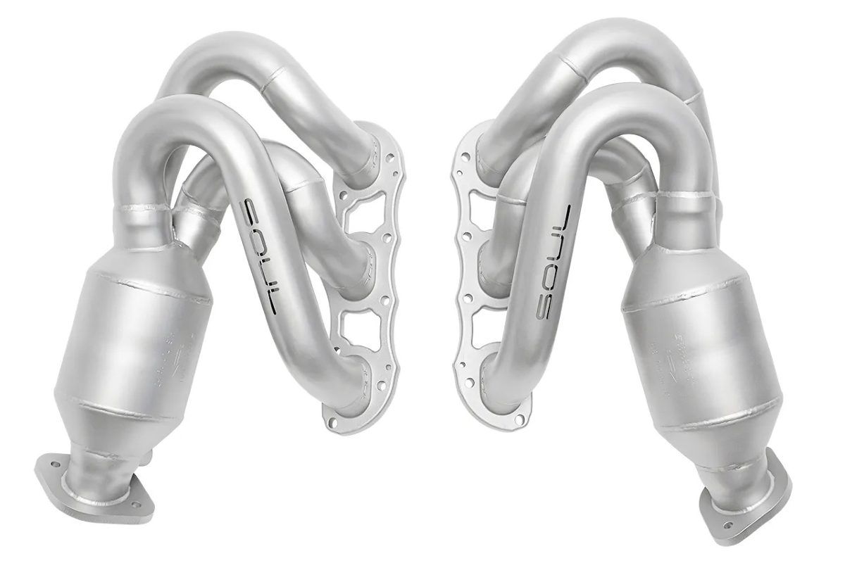 SOUL Performance Products’ Long Tube Street Headers for the Porsche 981 Boxster and Cayman (2013-2016) are engineered around large-diameter, free-flowing HJS HD 200-cell catalytic converters and true long-tube runners to deliver substantial gains in power, throttle response, and classic flat-six sound,all without triggering a check engine light when used as intended. Optimized 2″ primary runners and collectors are sized to extract maximum performance from the 3.4L engines while still producing meaningful gains on 2.7L cars, making this a true platform-specific solution rather than a generic header. Each set is hand-built from T304L stainless steel with port-matched flanges, smooth-radius primaries, and carefully designed collectors to maintain exhaust velocity and flow, then rigorously quality checked in-house before shipping.The premium HJS HD catalysts are EURO 4–capable, using a robust triple-foil core and brazing stripe for exceptional durability under high-heat, high-load use, so you don’t have to compromise between flow and longevity. Designed as a direct bolt-on with detailed instructions, these headers integrate cleanly with the factory system, are backed by SOUL’s renowned Lifetime Warranty (with a dedicated 3-year warranty on the HJS cats), and are intended for off-road / competition use where emissions regulations allow.