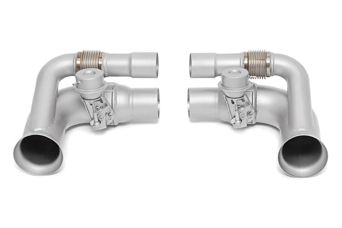SOUL Performance Valved Side Muffler Bypass Pipes for the 997 GT3 replace the factory side mufflers with lightweight 3″ T304L stainless valved pipes, cutting weight and heat while delivering a far more aggressive GT3 exhaust note with factory-style valve control.