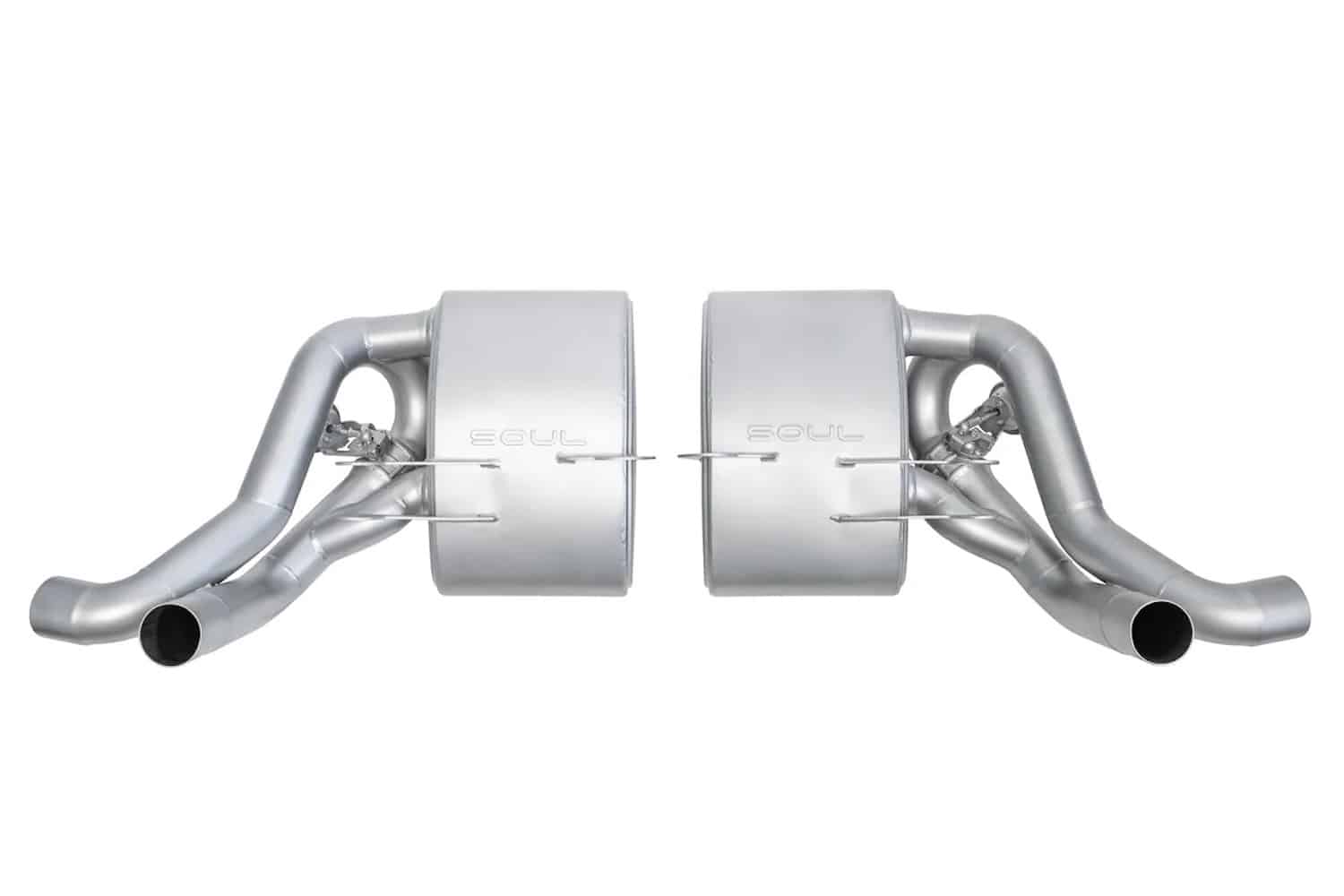 SOUL Performance 996 Carrera 4S Valved Side Mufflers deliver quiet cruising with the valves closed and an aggressive, Cup car-inspired tone when open, include polished tips, retain factory valve control compatibility, save 14.5 lb (6.5 kg) vs OEM PSE, and are built in-house with a Lifetime Warranty.