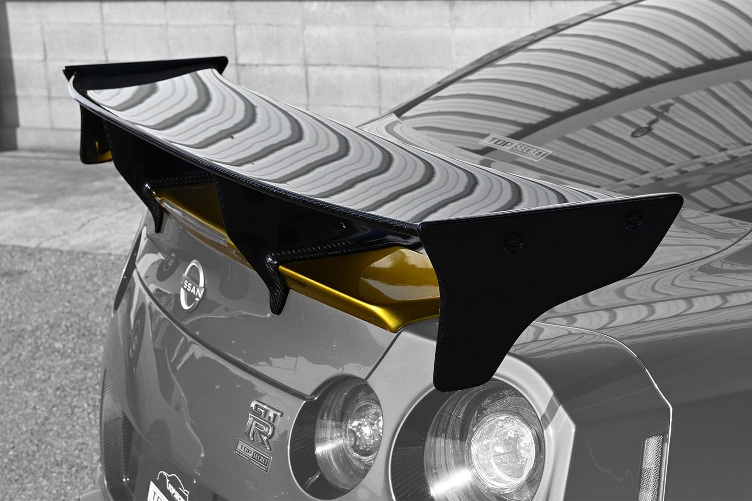 The Top Secret GT Wing ST1 for the R35 Nissan GT-R is a circuit-tested rear wing engineered to efficiently generate rear downforce while remaining compliant with vehicle inspection regulations. The low mount configuration makes it a practical option for drivers who want real aerodynamic performance without sacrificing street legality.