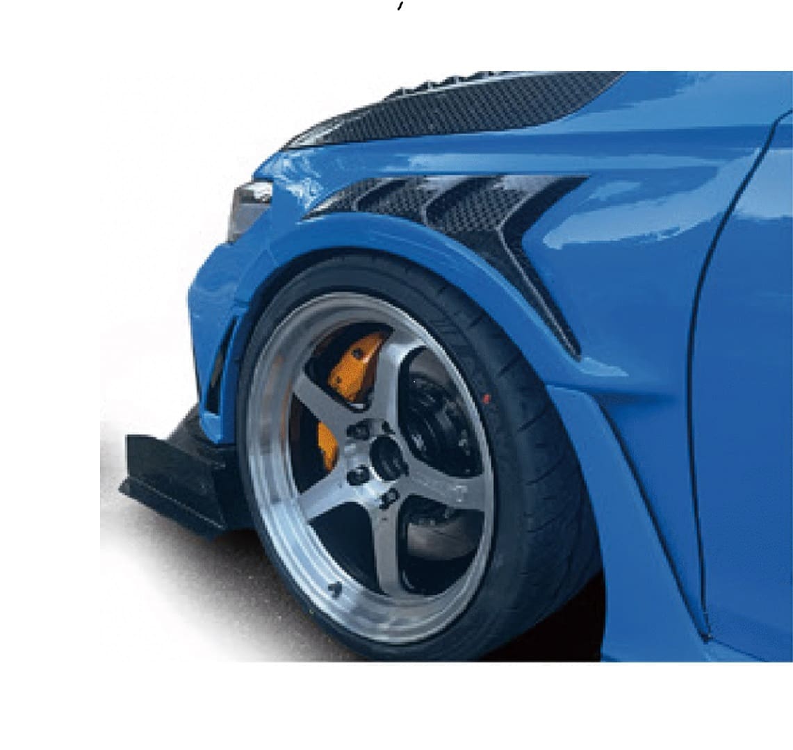 The Varis Arising-II Track Edition Front Fenders for the FL5 Honda Civic Type R are engineered to enhance aero efficiency and track performance by reducing turbulence around the fender area and improving airflow management at speed. Designed with increased track width, they help support a wider stance for improved grip and stability during aggressive cornering. This kit includes four pieces and features Varis proprietary Carbon+ construction, produced using race-inspired vacuum molding to minimize resin content for significant weight reduction while increasing carbon fiber density for higher rigidity. Varis’ original resin formulation, developed in collaboration with resin manufacturers, is engineered for greater durability and hardness, then finalized with post-curing heat treatment to complete a secondary curing process for consistent strength and long-term performance.