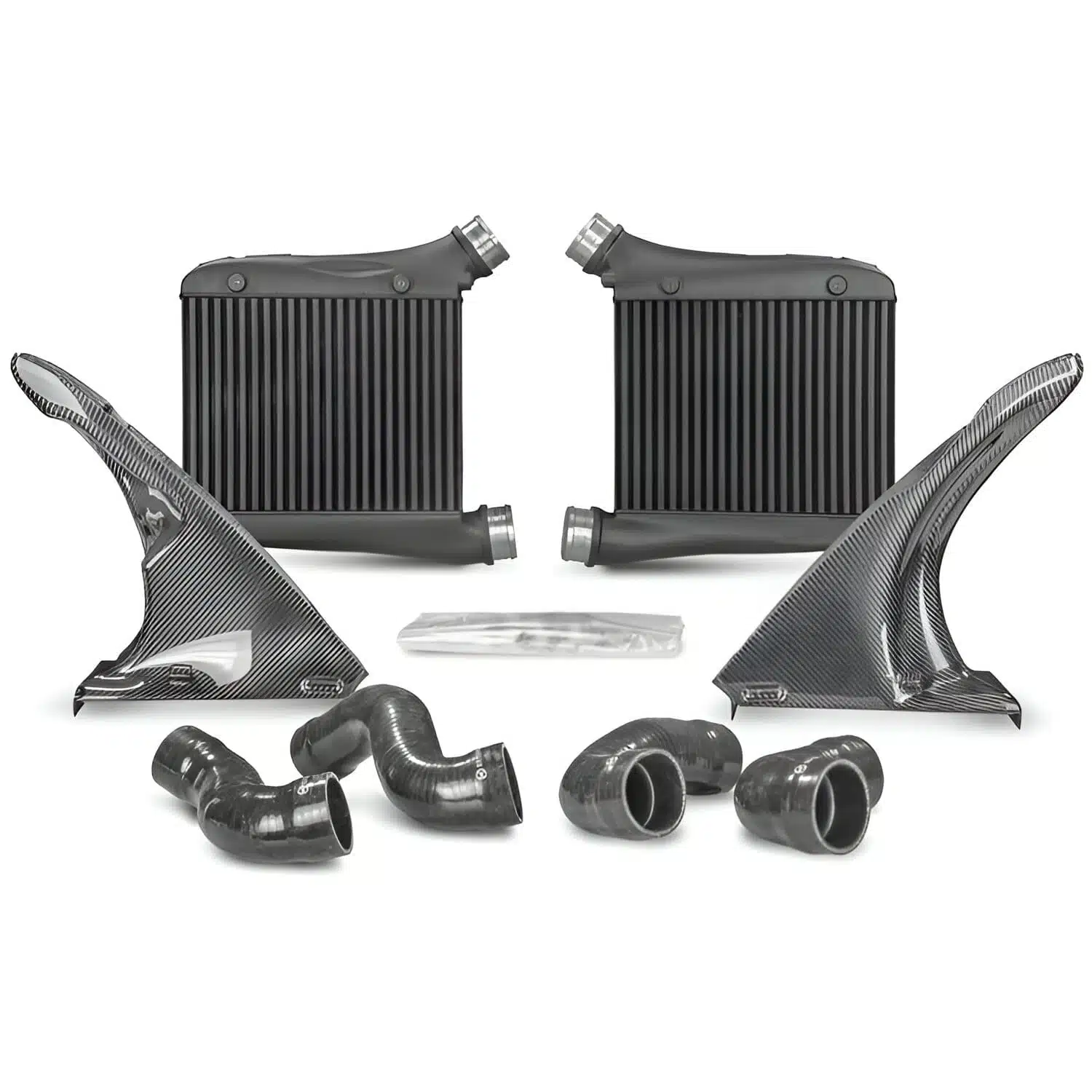 The Wagner Tuning Competition Intercooler without Parking Heater for the C8 Audi RS 6 is a purpose-built charge-air cooling upgrade designed to maximize the performance potential of the 4.0 BiTurbo engine. Featuring enlarged, competition-grade intercooler cores with optimized internal flow, the system significantly reduces intake air temperatures while increasing charge-air volume for more stable and efficient power delivery under high load. Precision-engineered cast aluminum end tanks and high-quality components ensure minimal pressure loss and exceptional durability, making the kit suitable for both aggressive street use and track driving. Supplied as a complete, plug-and-play solution that directly replaces the factory intercooler, this kit delivers improved throttle response, enhanced performance consistency, and reliable thermal management without compromising everyday drivability.