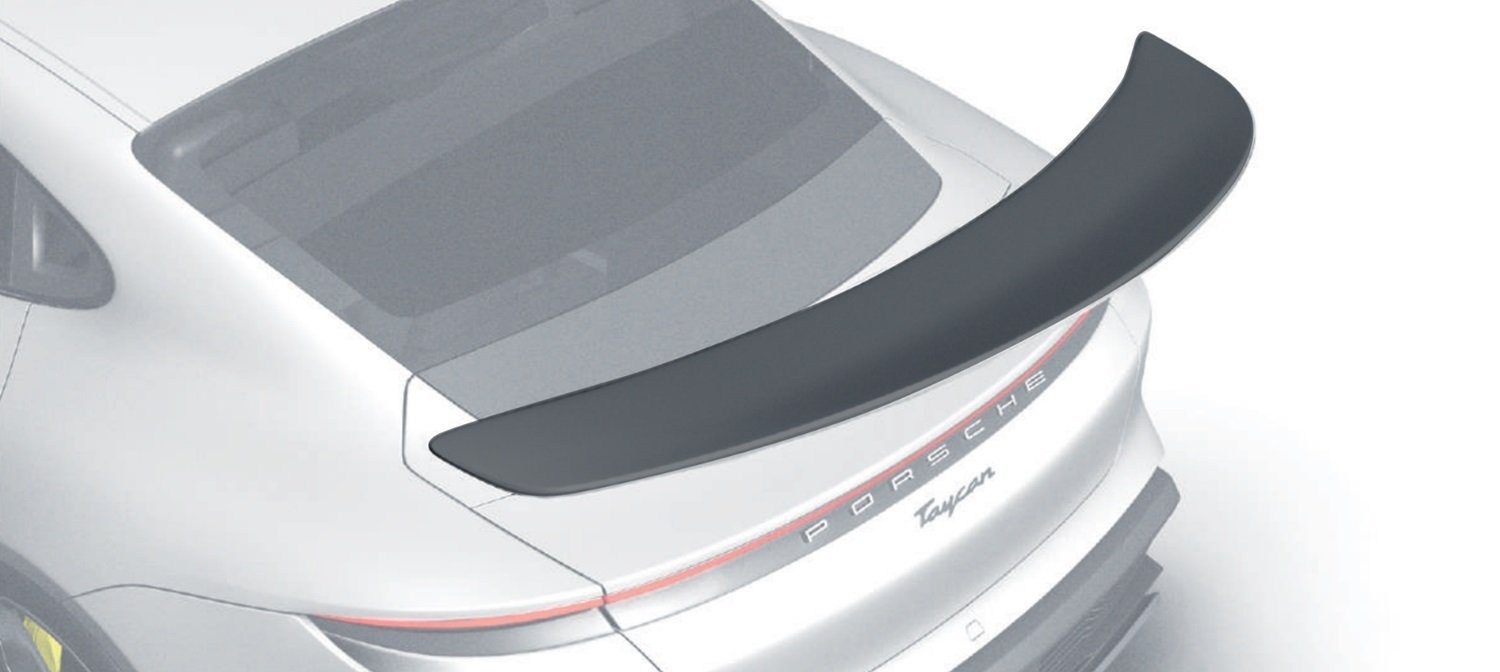 ZACOE Performance adds a modernized wing to the Taycan, enhancing downforce and aerodynamics while preserving the stock spoiler’s function and emphasizing its sleek profile.